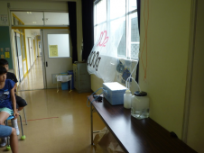 まず、緑のカーテンを育成するのに必要な物の準備段階と、育成時に発生するCO₂排出量を児童らに簡易的に計算してもらい、エアコン使用時のCO₂排出量の値と比較することで、緑のカーテンの設置には多くのCO₂が排出されることを学んでもらいました。