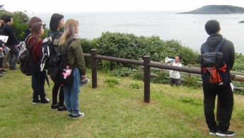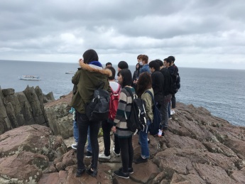 環境・食品科学科の理化学基礎実験IVの実験実習の一環として、東尋坊周辺の荒磯遊歩道・二の浜遊歩道を辿り、東尋坊や雄島周辺で、10月21日(土)に地学巡検を実施しました。(中学・高校理科免許;必須単位)
