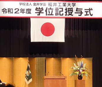 2021年3月15日(月)にサンドーム福井にて、学位授与式が挙行され、その後、学科に分かれて、一人一人に、矢部主任教授から、学位記が手渡されました。また、学科先生方からのメッセージの冊子も配られ、いつもとは趣がちがいましたが、とてもよい式でした。