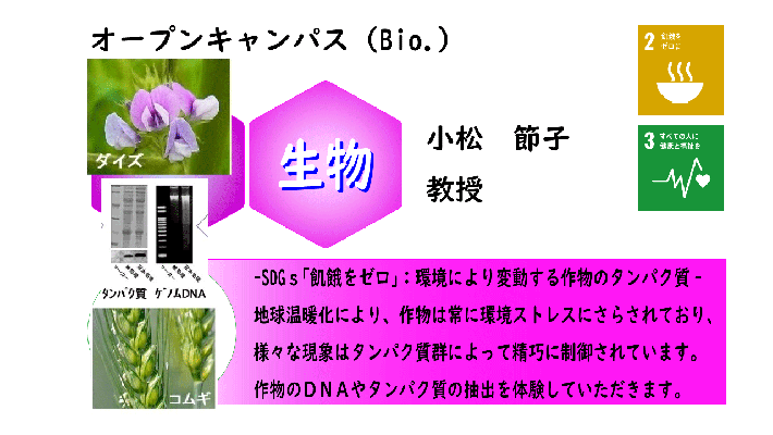 | 第3回 | 7/16(土) | 環境:竹下講師、化学:木村教授、生物:矢部教授、食品:古澤教授 | |