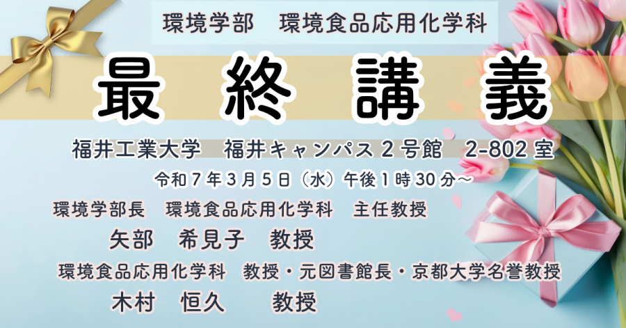 2024年度、環境学部 環境食品応用化学科では、お二人の先生方が退職されます。
