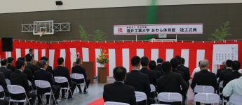 本年度に新設したスポーツ健康科学部の主要キャンパスの中心施設となる「福井工業大学 あわら体育館」が完成し、2015年7月30日(木)、あわらキャンパスの同体育館で竣工式が挙行されました。