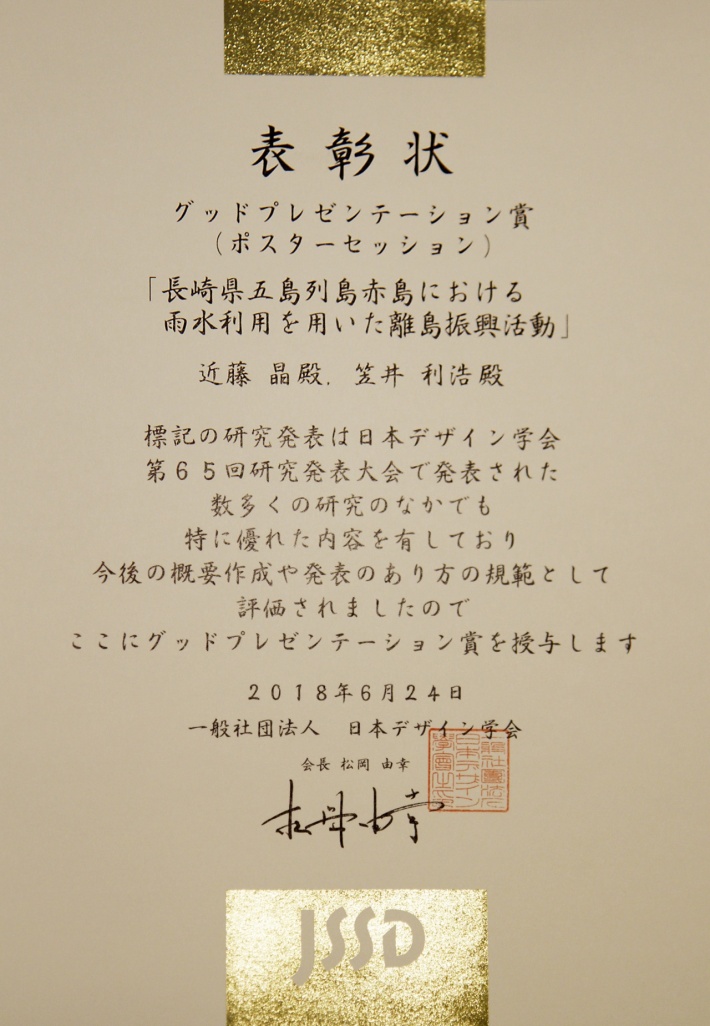 グッドプレゼンテーション賞受賞!!デザイン学会65回大会