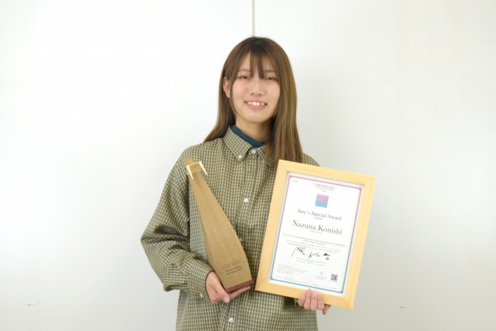 第2回「隈研吾&東川町」KAGUデザインコンペにて、本学デザイン学科3年生の小西なずなさん(村井研究室)が、特別賞を受賞しました。