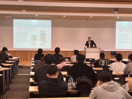 講義冒頭、AIで世の中がどう変わるかについて、大規模言語モデルの凄さを事例をもとにお話しいただきました。