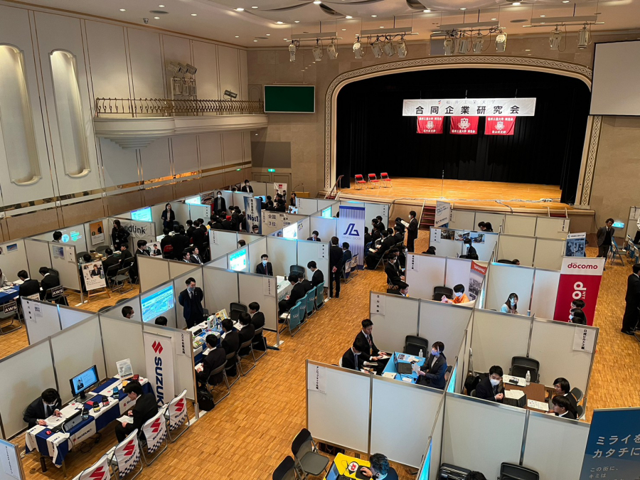お知らせ NEWS & TOPICS トップページ お知らせ お知らせ 学内合同企業研究会が始まりました 2023.11.28 学内合同企業研究会が始まりました 2025年3月卒業・修了生を対象とした学内合同企業研究会が始まりました。 今年度は令和5年11月28日(火)から12月8日(金)までの9日間の日程で計412社の企業様にご参加いただく予定です。 今回より完全対面形式に戻り、以前のような活気にあふれた研究会となっています。 参加した学生たちは3月の就活解禁に向けて、より多くの情報収集ができるよう積極的に企業ブースを訪問し、いよいよ本格化する就職活動への準備を進めていました。 お忙しい中、本学学生のためにご参加いただきます企業・団体の皆様には心より御礼申し上げます。 お問い合わせ:就職支援課 PREV 一覧に戻る NEXT