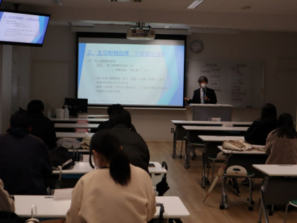12月20日(水)に、経営情報学部経営情報学科が授業内講演会を開催し、県内の公認会計士より、財務分析の有用性についてお話を伺いました。