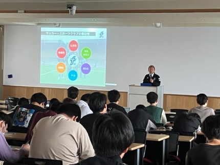 福井ユナイテッド株式会社 代表取締役社長GM 服部順一氏に「福井ユナイテッドの取組み」のテーマでご講義いただきました。