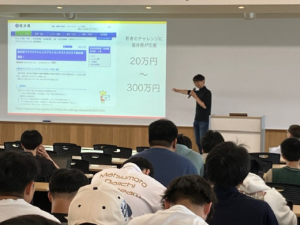 お知らせ NEWS & TOPICS トップページ お知らせ お知らせ 【講義レポート】地域共生学 6/5(水) 2024.06.06 【講義レポート】地域共生学 6/5(水) 株式会社jig.jp 代表取締役社長 福野 泰介氏に「シビックテックのススメ」のテーマでご講義いただきました。 講義冒頭では、「一日一創」の信念のもとこれまでに4133個ものアプリを作成してきたことを語られました。 次に、オープンデータを活用して東尋坊に関するアプリを作成したことや「こどもパソコンIchigoJam」を作製し、プログラミング教育の普及に努めていることについて紹介されました。 最後に、学生に向けて、学生時代から起業できるチャンスがあることを述べられ、自分が好きなことから始めて追求することで、いずれは社会的な価値の向上につながることを助言されました。 お問い合わせ:学務課 PREV 一覧に戻る NEXT