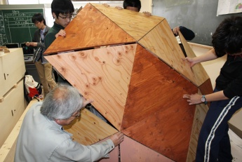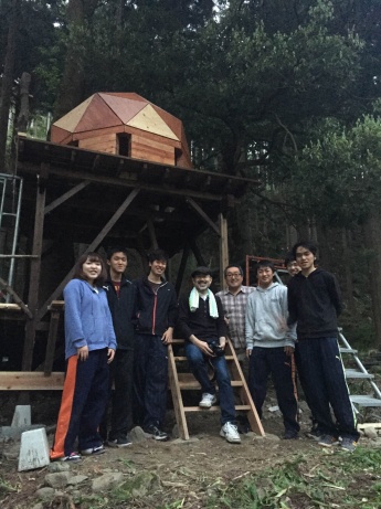 建築土木工学科とデザイン学科の有志による昨年秋のデザイン提案から約半年間、地元の方々の多くのご指導・ご協力を得ながら、土台作りから工事を行ってきました。ドーム部分は学生だけで設計から材料発注・施工までを行い、関わった述べ77人の学生にはとても貴重な体験でした。