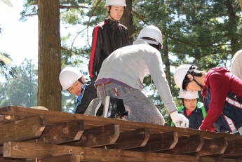 本学は、昨年から「坂井市竹田の里プロジェクト」に参加してまいりましたが、この度、冒険型プレーパーク内の中心施設となるツリーハウス・ドームを完成させました。