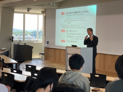 講義冒頭、池田町の概要を述べられ、地域づくりやまちづくり、チームワークとは何かを説明していただきました。