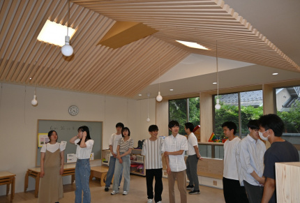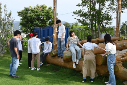 その後は、同敷地内の大型遊具製作工場の見学、屋外展示遊具でのあそび体験、場所を移動して第二さみどり幼稚園の園舎や園庭の大型遊具の見学など、大変充実した見学時間となりました。
