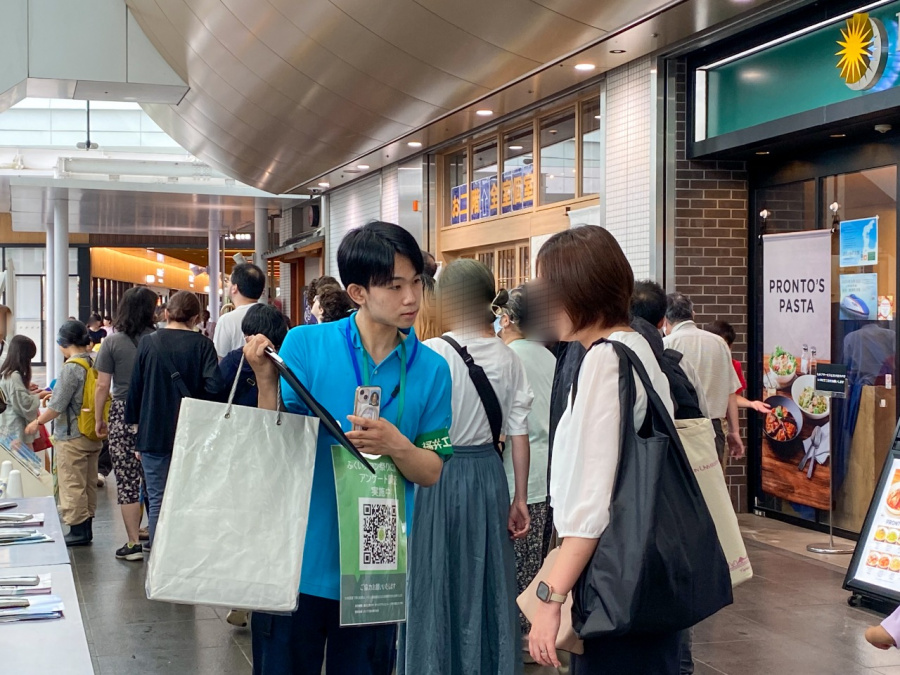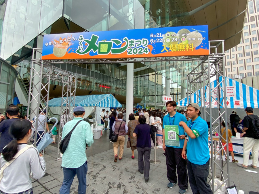 まちづくり福井株式会社との協働でFUT実践学演習を受講している学生を中心に建築土木工学科の学生10名が「ふくいメロンまつり2024」にて調査を実施しました。調査は、まちづくり福井株式会社より福井工業大学まちづくりデザインセンター副センター長ならびに工学部建築土木工学科教授の吉村朋矩先生に依頼があり実施に至りました。