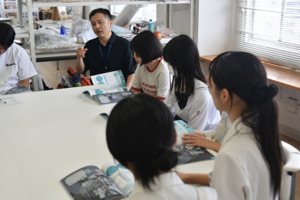 また、今回は、スペシャルプログラムとして女子学生主導による「テクガール」を実施しました。ランチを食べながら、本学での学びや学生生活についての疑問や質問に答え、交流を深めました。福井製菓専門学校 北川主任講師が今回特別に作っていただきましたケーキを食べながら、和やかにイベントは終了しました。
