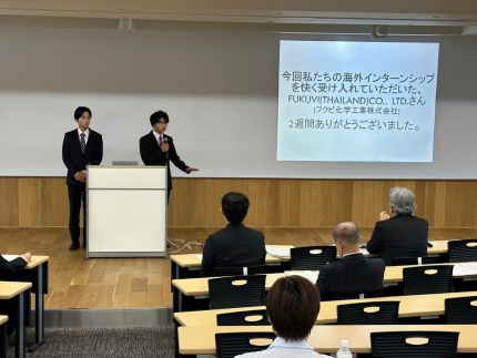 お知らせ NEWS & TOPICS トップページ お知らせ お知らせ 令和6年度海外インターンシップ学内成果発表会を開催しました 2024.10.11 令和6年度海外インターンシップ学内成果発表会を開催しました 令和6年10月9日(水)および10日(木)に海外インターンシップ研修成果発表会を学内にて開催しました。 研修を受け入れていただいた企業様や学内の関係者の方々をお招きし、現地での研修で頑張ったことや学んだこと、海外経験を踏まえての今後の学生生活の過ごし方などを発表しました。 帰国後の変化やこれからの目標などにも触れ、海外インターンシップを経験したからこその成長を感じられた場となりました。 研修開始時よりも一回り成長した学生たちの、今後の活躍が本当に楽しみです。 改めて今回のインターンシップにご協力いただきましたすべての方々に感謝申し上げます。 お問い合わせ:就職支援課 PREV 一覧に戻る NEXT