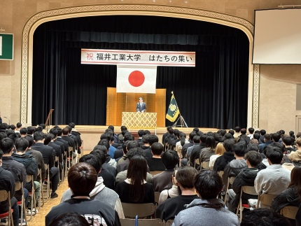 令和7年1月22日(水)金井講堂にて、今年度二十歳を迎える学生を対象に令和6年度福井工業大学はたちの集いを挙行いたしました。今年度は本学学部生458名・専攻科26名・専門学校33名の517名が二十歳を迎えました。