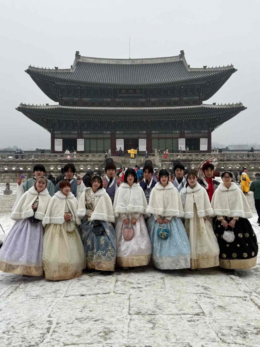 お知らせ NEWS & TOPICS トップページ お知らせ お知らせ 韓国明知大学文化交流プログラム 2025.02.20 韓国明知大学文化交流プログラム 令和7年2月8日(土)~2月15日(土)にインターナショナルセンターでは本学学生がグローバルな視野を広げるための取り組みの一環として平成28年より連携協定を締結している韓国・明知大学で文化交流プログラムに12名の学生が参加しました。 韓国語レッスンをはじめ、韓国食文化、景福宮で韓服体験など様々な韓国文化に触れることができ、充実したプログラムとなりました。また、明知大学の学生と交流でき参加した学生は満足してプログラムに参加することができました。 インターナショナルセンターでは引き続き、学生たちが異文化を理解し、国際的な視野を広げるための活動を積極的に進めてまいります。 お問い合わせ:インターナショナルセンター PREV 一覧に戻る NEXT