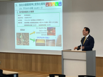最後に、学生に向けて、外部環境の変化に対して機敏に、そして柔軟に対応し、地方から全国、さらに世界へ羽ばたいてほしいと語られました。
