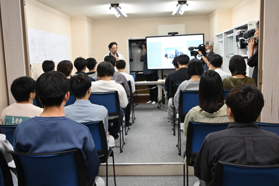 建築土木工学科では「建築施工」の講義で、福井県内建設業の方々の協力をいただき、現場見学会を実施しています。今年度は、福井駅前電車通り北地区B街区で進む第一種市街地再開発事業の現場を技建工業株式会社様のご協力で建築土木工学科3年生55名が参加して実施することができました。