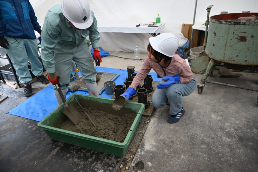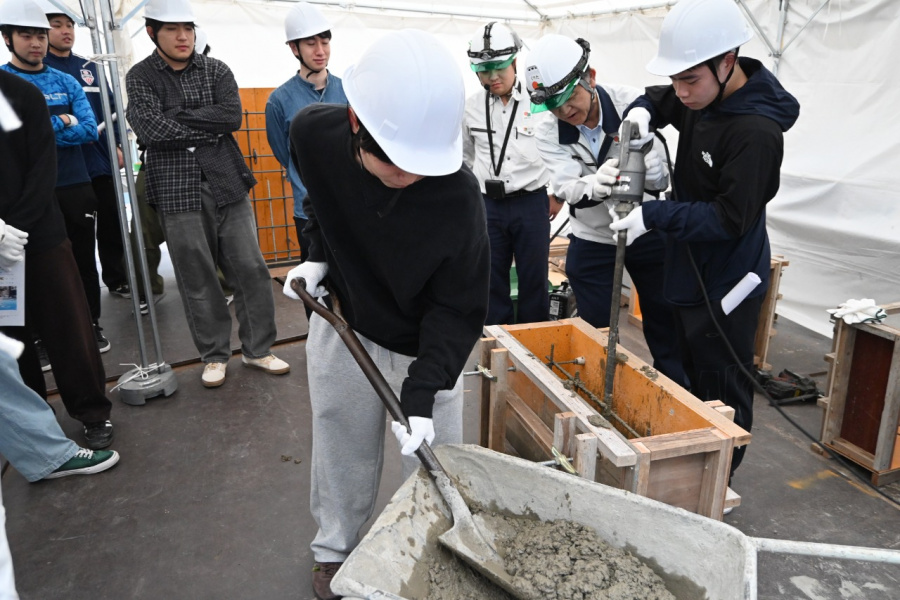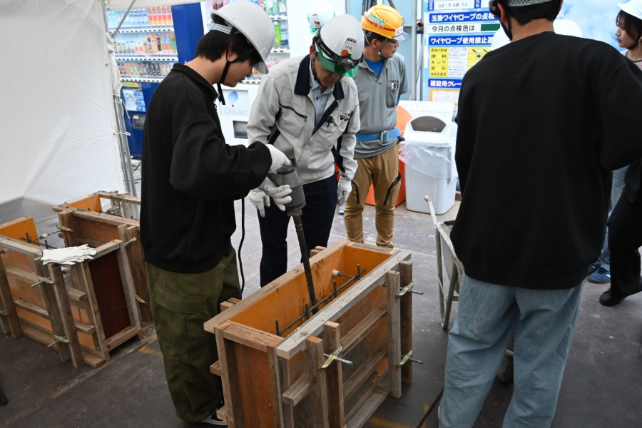 鉄筋組立やコンクリート打設体験に積極的に参加したので、楽しい経験ができた。