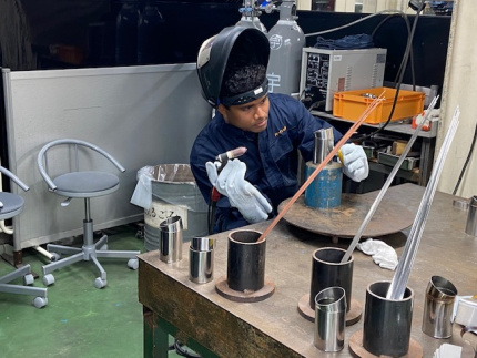 本学は学生のものづくりに興味のある学生向けに毎年技術講習会を行っており、今年も令和7年度第1回 技術講習会『ものづくりチャレンジ』を9月26日に開催いたしました。今回は留学生の学生も参加があり、簡単な説明のあと、学生一人ひとりに今回の制作テーマである『ステンレス製マグカップ』を制作してもらい、飲み口を溶接してもらう内容で行いました。参加した学生からは『想像以上に難しかった。様々な条件で難易度が変わり奥が深く大変だったけど楽しかった。』と感想があり、学生たちにものづくりの難しさや、できた時の達成感を体験できた講習会となりました。