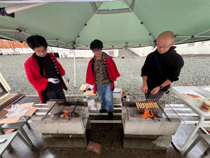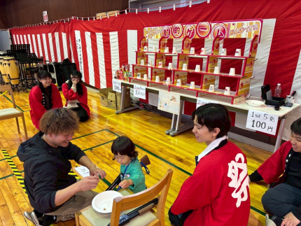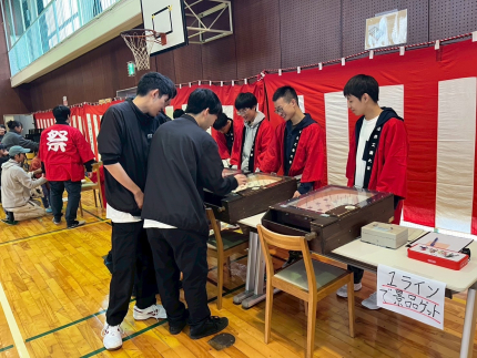 屋台では、学友会の学生がボランティアで参加し、焼き鳥や射的、スマートボールやボッチャをおこない、地元の方々と触れ合いながら祭りを楽しみました。