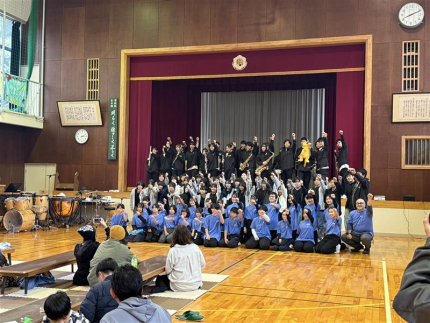ステージでは、科学実験キャラバンとして、学生による、科学実験ショーや吉本興業のお笑いステージ、FUTブラスinみさきちもおこなわれ、地元の上中中学校・小浜中学校の生徒や本学吹奏楽部が演奏を披露しました。
