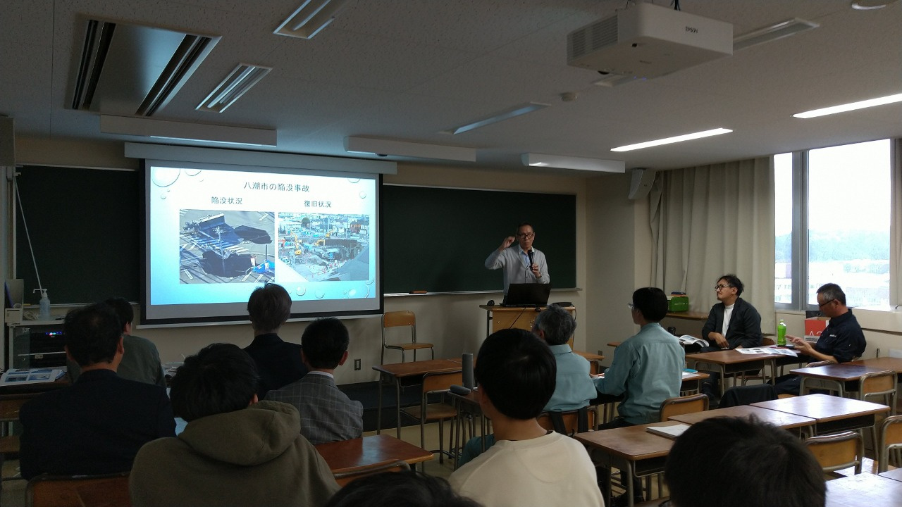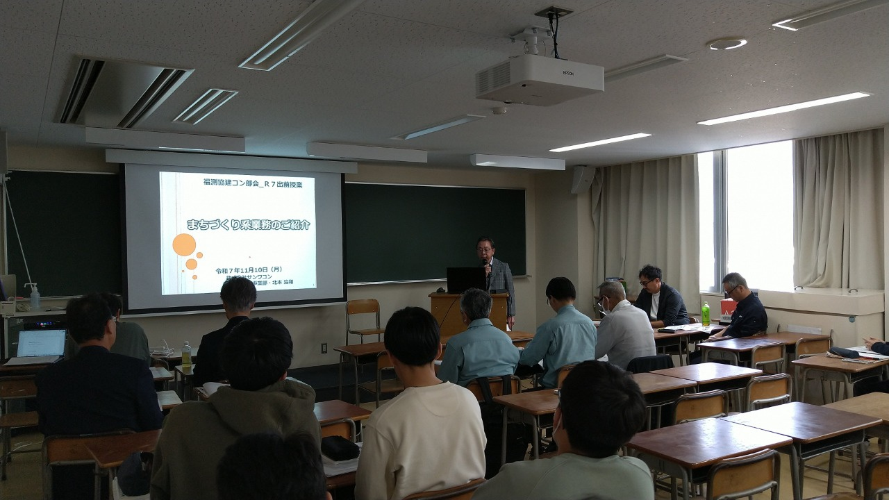 お知らせ NEWS & TOPICS トップページ お知らせ お知らせ 【建築土木】福井県測量設計業協会様による出前授業の実施 2025.11.19 【建築土木】福井県測量設計業協会様による出前授業の実施 11月10日(月)の2年応用水理学及び演習において、一般社団法人 福井県測量設計業協会の建コン部会様に出前授業を実施していただきました。 出前授業では、部会長の山崎様の開会挨拶に続き、福井県内の建設コンサルタントの方々より、まちづくり系業務や地すべり対策設計事例、下水道管渠の老朽化対策、コメの生産拡大に向けた取組みについて、ご講演いただきました。 学生達は、今回の講演を通して、土木分野の幅広い設計業務内容だけでなく、近年目覚ましく発展しているドローンやLiDAR、AIの設計業務への利用例を知ることができました。 お問い合わせ:建築土木工学科 一覧に戻る NEXT