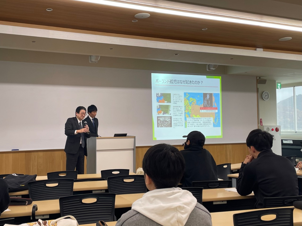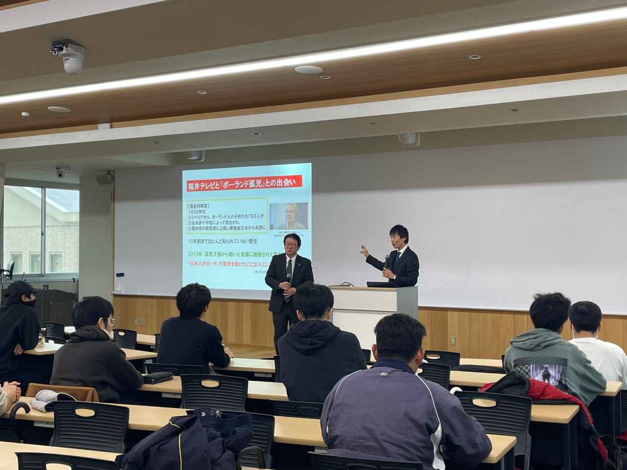 福井テレビジョン放送株式会社 代表取締役社長 酒井 美樹男 氏に「ポーランド孤児つなぐプロジェクト」というテーマでご講義いただきました。