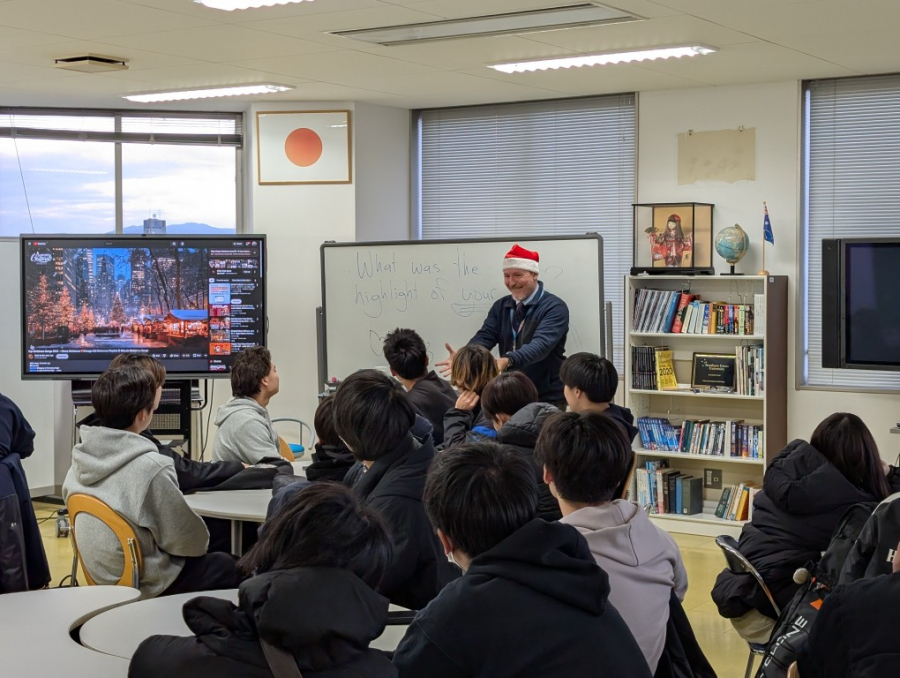 令和7年12月22日にSPECイベント「2025 ― The Year That Was(2025年を振り返る)」を開催しました。SPEC教員から「今年の漢字ベスト3は何か?」「今年の訪日観光客数は何人か?」など2025年にちなんだクイズが英語で出題され、参加者は5つのグループに分かれスマホ検索禁止で挑戦しました。普段はあまり接する機会がない学生達が同じテーブルでピザを食べながら交流を深めました。学生37名、教員8名が参加し大盛況のイベントとなりました。SPECでは日本人学生、留学生、外国人教員の交流を目的とした多文化体験イベントを毎年開催しています。