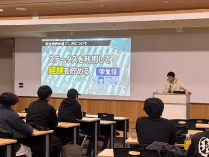 講義の最後には、学生という立場を活かし、積極的にさまざまな場所へ飛び込んで経験を積むことの大切さが伝えられました。