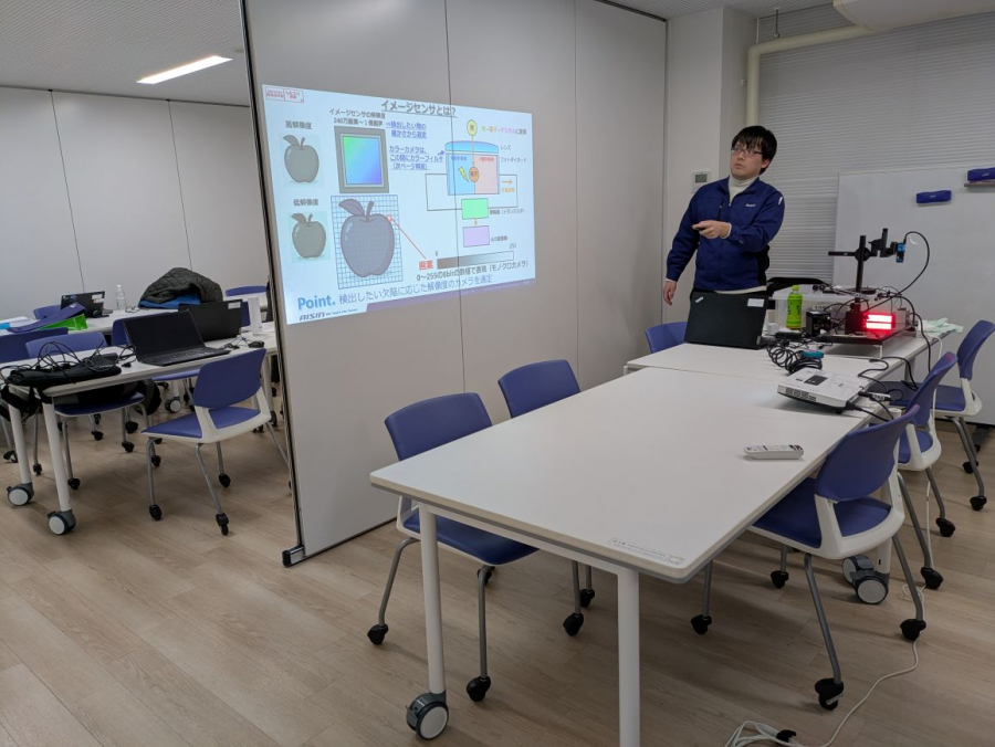 本授業は,3年次対象の専門科目「ソフトウェア開発II」の一環として実施され,講義で学んだ画像データ処理の知識が,実際の製造現場でどのように活用されているのかを具体的に理解することを目的としています。