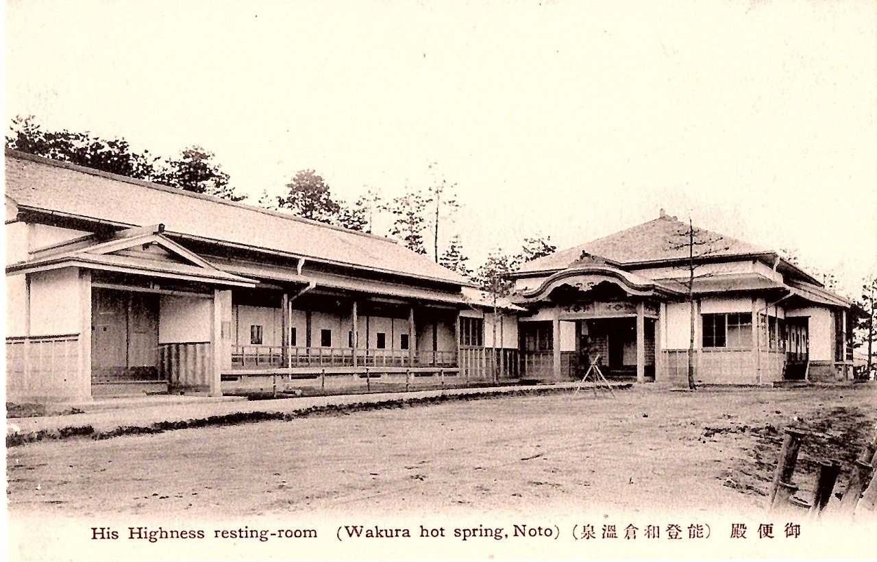 明治42(1909)年9月27日、皇太子東宮殿下(後の大正天皇)能登行啓の和倉休憩所「御便殿」として宮内庁の設計で新築された所謂「皇室建築」の一つであり、木造洋風トラスによる近代和風建築である。当時の宮内庁の厳命から現地保存が決定した背景から、全国的にみて稀少で秀逸な建築遺産と言える。