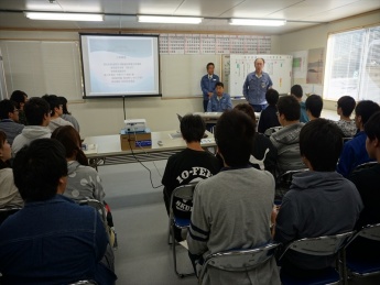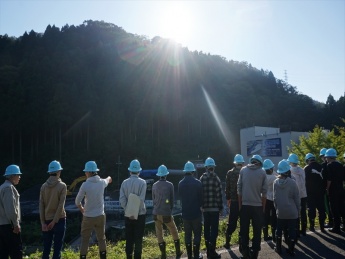 建築土木工学科1年生及び建築生活環境学科2年生から4年生の学生29名と教職員6名を対象に、南越前町大桐にある作業所会議室にてトンネル工法等の説明を受けた後、トンネル現場を見学しました。今回の現場見学会は、大桐工区新北陸トンネル作業所の高橋所長様が本学出身ということもあり、北陸新幹線の現場見学会が実現したもので詳細は下記の通りです。