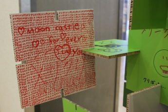 ボードには、様々なメッセージやイラストを学生や地域の方々に描いていただきました。