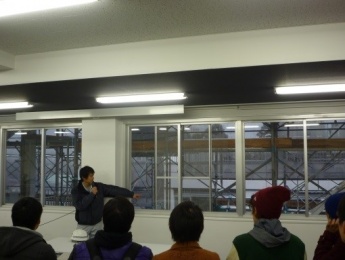 学生は熱心に、先輩技術者の説明を聞き入っており、現在の進捗状況や施工方法、安全管理、工期管理など、建築現場に関する幅広い専門知識を理解することが出来ました。