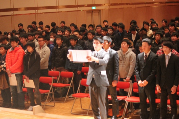 また、新成人代表として、工学部電気電子情報工学科2年 亀山紅葉さんより「成人式を迎えるまで私達を育て支えてくださった方々に深く感謝し、これからは成人としての自覚を持ち、思いやりと勇気をもって責任ある行動をとって参ります」と答辞を述べました。