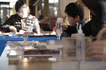 平成28年1月24日(日)おおい町総合町民センターにて、地元の方々とデザイン学科の学生が共同で、町制施行10周年を飾るオブジェ作品の制作作業を行うイベントが開催されました。