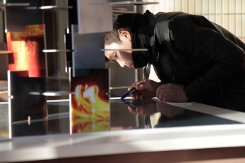 昨年夏、おおい町から依頼を受けた事から制作を開始。作品は3点で、同学科学生で町を訪れ撮影した風景写真と、おおい町から提供された写真をベースに3年川堺翔二さん、楠大和さん、黒川拓夢さんがそれぞれ企画・制作を行いました。学生たちは不慣れながらも参加者の方々に作業の指導を行い、終始和やかな雰囲気で行われました。完成しなかった箇所の仕上げや最終調整を学生が大学で行い、1月30日(土)に作品が完成します。