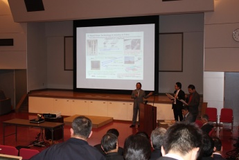 フォーラムのプログラム「サムライプレゼンテーション」と銘打った県内企業の紹介で、本学も参加しました。発表は、竹田周平学長補佐(工学部・建築土木工学科教授)が、5分という短い時間ではありましたが、学部・学科構成、教育システム、タイ・バンコクのASEAN事務所、留学生支援に関することを説明しました。また、このプレゼンテーションはバンコクに生中継され、現地の方々にも本学の紹介することができました。質疑応答の時間には、現地の方から本学に対し複数の質問があり、留学に対する関心の高さが感じられました。