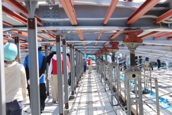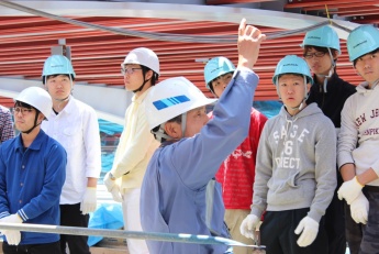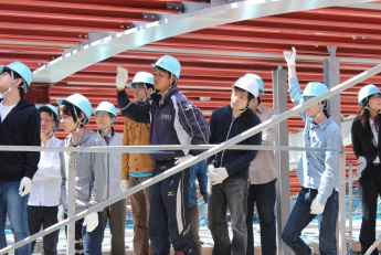 足場が撤去された後には見ることができない最上部の鉄骨の溶接状況や、巨大な鉄骨トラス梁の地組み状況を間近に目にすることが出来たり等、大変貴重な時間となりました。