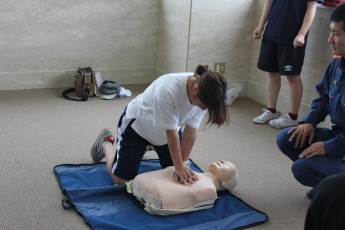 お知らせ NEWS & TOPICS トップページ お知らせ お知らせ AED講習会(普通救命講習会)を行いました。 2016.07.11 AED講習会(普通救命講習会)を行いました。 平成28年7月9日(土)9:00~12:00に、FUTタワー多目的会議室にてAED講習会を行いました。福井市消防局中消防署の西分署より来ていただいた救急救命士の方の指導の下、クラブに所属している学生35名が参加し「要救助者の発見から心肺蘇生、AEDの使用、救急隊へ引き継ぐまで」をDVDを視聴し、その後、3グループに分かれて実施指導を受けました。受講した学生達は講師の指導の下、真剣に取り組んでいました。講習会終了後のアンケートではほとんどの学生がAED使用法に自信を持てる結果となり、「突然の事態に対応できるよう、普段の生活から意識していきたい」との意見も出ました。 お問い合わせ:学務課 PREV 一覧に戻る NEXT