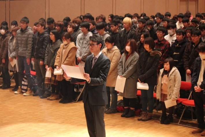また、新成人代表として、原子力技術応用工学科2年波多巧さんより「これからは大人としての自覚を新たにし、2年後に胸を張って社会人となれるように、企業の即戦力となれるように、この福井工業大学で勉学にクラブ活動に、より一層努力していきます」と答辞を述べました。