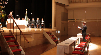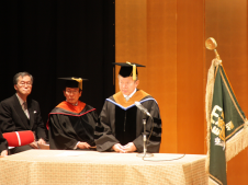 森島学長からは、「自らが主体的に学び、自分で解析することが大学で学ぶことの核心である。与えられたことを学ぶのではなく主体的能動的な学習に切り替えてほしい。そして、学業だけではなく課外活動で仲間と切磋琢磨して人として成長してほしい。」と式辞がありました。
