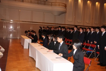 新入生を代表して、工学部建築土木工学科の白崎陸さんが「建学の精神に則り、勉学に励み、学問の真理探究にまい進する」と宣誓しました。