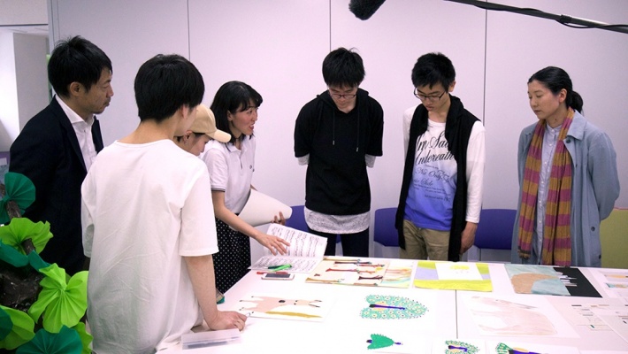 福井県立音楽堂の開館20周年記念公演「未来の動物の謝肉祭」にて、本学デザイン学科が映像で共演!計16校の地元中学校・高校の生徒が、音楽にインスピレーションを得て制作したアート作品をモチーフに、デザイン学科の学生が映像化します。5月28日(日)と6月3日(土)の2日間、本学にて大学生が中学生や高校生と意見交換するワークショップを開催しました。新曲を書きおろす4人の作曲家の先生方も駆けつけ、アートとデザインと音楽の立場から語り合う楽しいイベントとなりました。