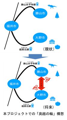 このため、福井県の県庁所在地である福井市と奥越地域を環境に優しい乗り物(グリーンモビリティ:特に鉄道と自転車)で環となるように結ぶことで、自動車による観光(主に日帰り観光)から公共交通と自転車の連携による観光(主に滞在型観光)に転換を図る提案を行うことを目的としている。