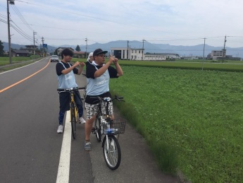 当日の天候が心配されましたが、天気に恵まれたなかで、参加者はポタリングを通して福井国体自転車ロードレースコースを満喫し、大野の自然や食を楽しみました。またスマートフォンなどのカメラで自分のお気に入りの場所や来訪客に伝えたい場所、自転車で通行しにくい箇所などを撮影しました。ポタリング終了後、参加者同士でポタリングした感想や今後の展開など意見交換会を実施しました。(ポタリング…自転車版の散歩)