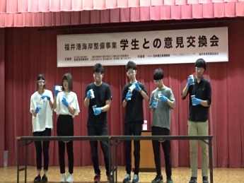 平成29年8月9日(水)に国土交通省北陸地方整備局敦賀港湾事務所等が主催する「福井港海岸整備事業 現場見学会・意見交換会」に本学工学部建築土木工学科の3年生56名がキャリア教育の一環で参加しました。